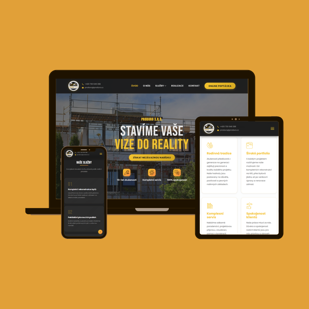 PRODURO s.r.o. je nově založená stavební společnost, která má však mnohaleté zkušenosti jako dřívější rodinná společnost. My jsme pro nově vznikající firmu vytvořili nový web, který bude sloužit jako prezentace firmy i prostředek pro propagaci na inernetu. Zobrazit web